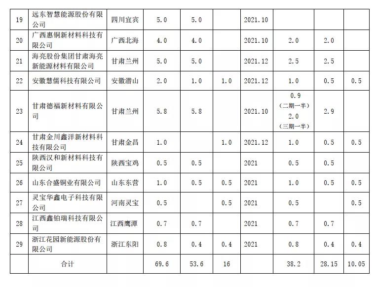 3、 2021年國(guó)內(nèi)新增電解銅箔產(chǎn)能的統(tǒng)計(jì)
